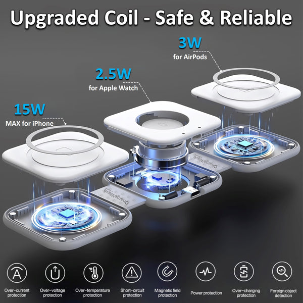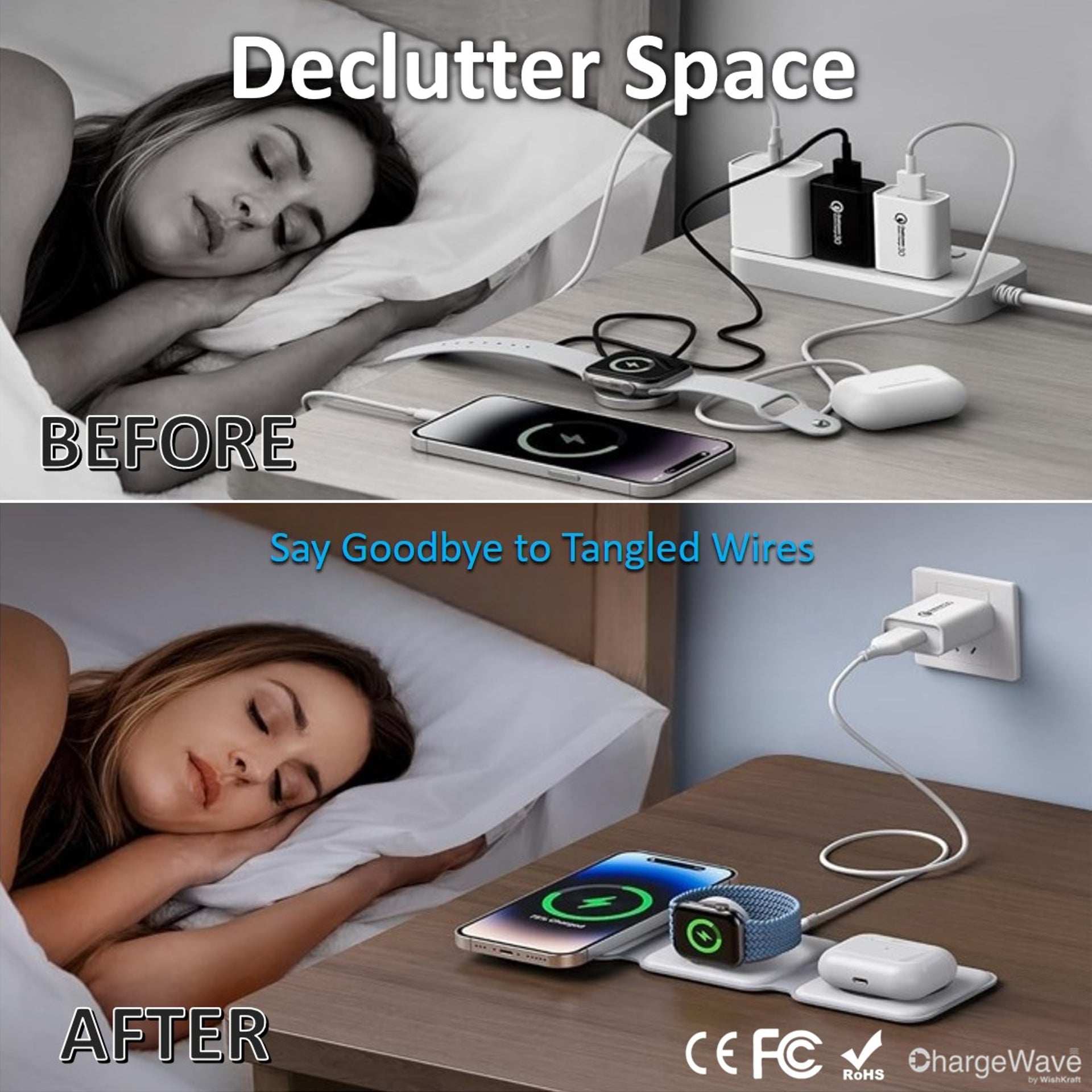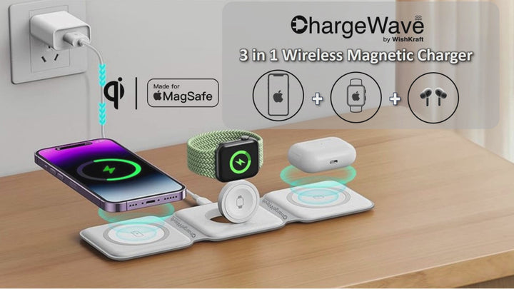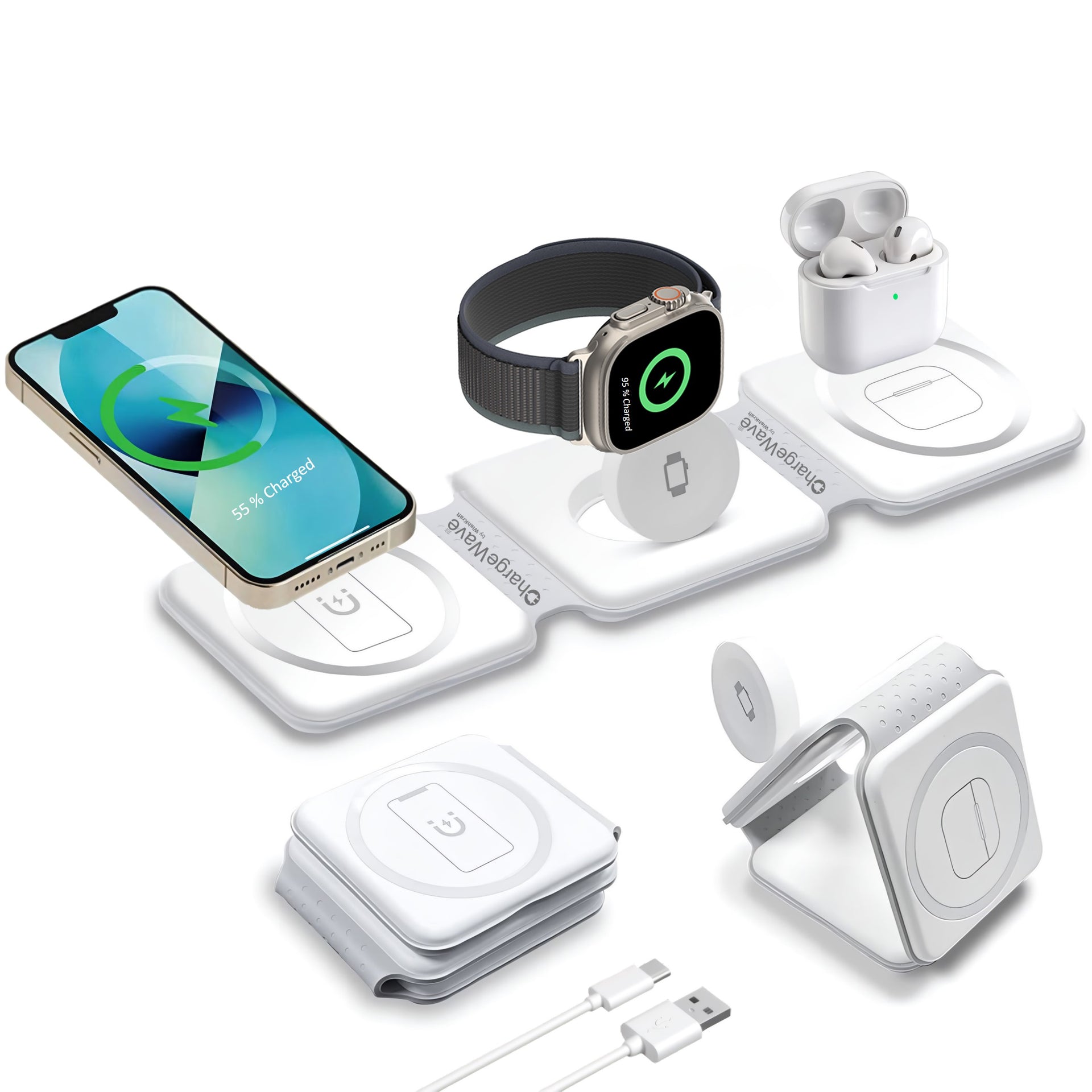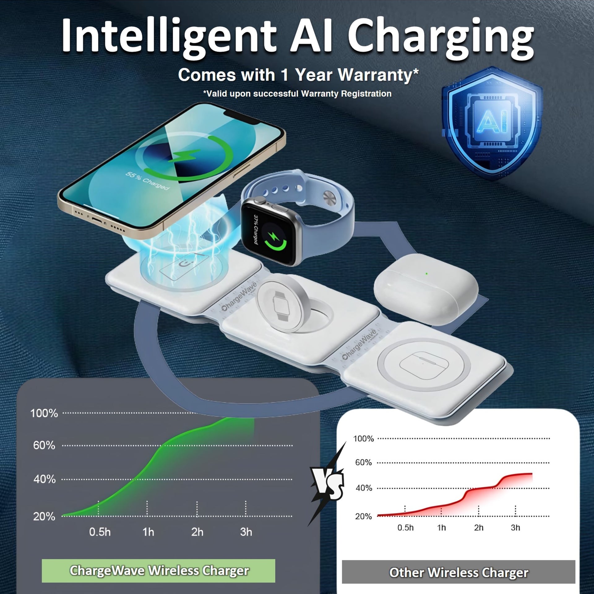 ChargeWave 3in1 MagSafe Wireless Charger for iPhone, AirPods & Apple Watch | Magnetic Foldable Charging Station Pad & Stand