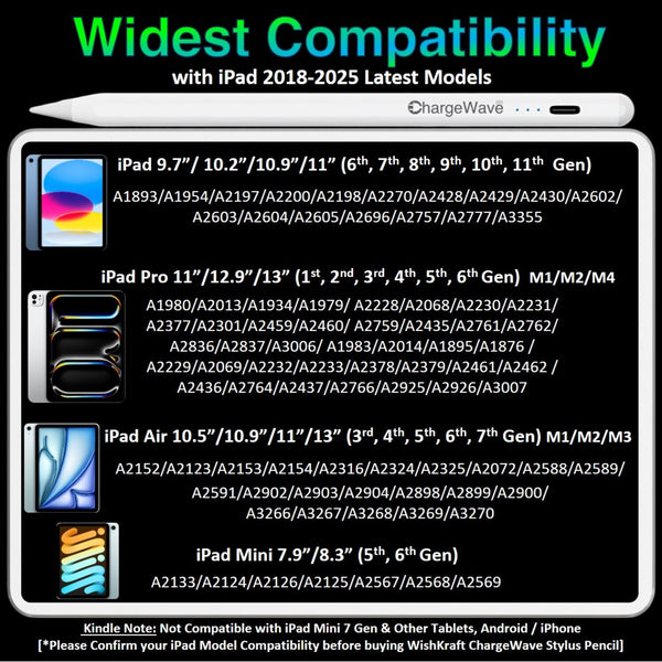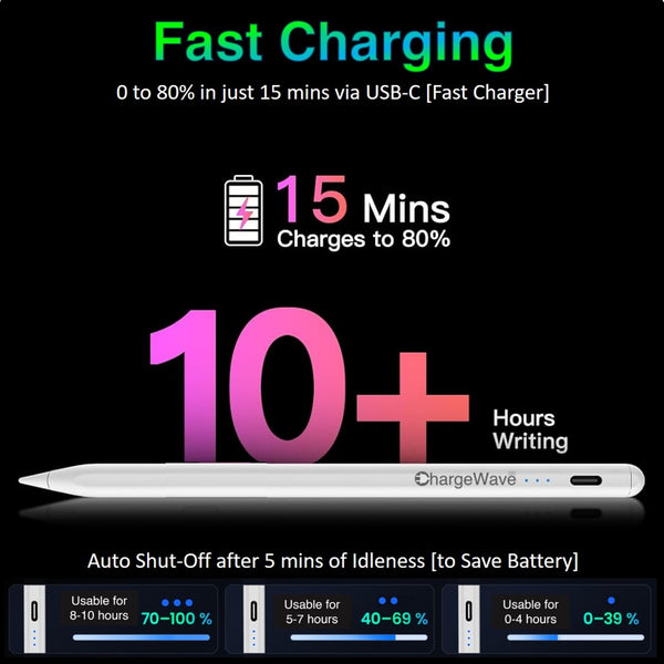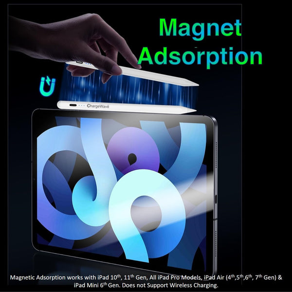 ChargeWave iPad Pencil for 2018-2025 Apple iPad, iPad Pro, iPad Air & iPad Mini | Stylus Pen with Palm Rejection, Fast Charge, Tilt Sensitivity, Magnetic Attachment & High Precision [with 2 Extra Tips]