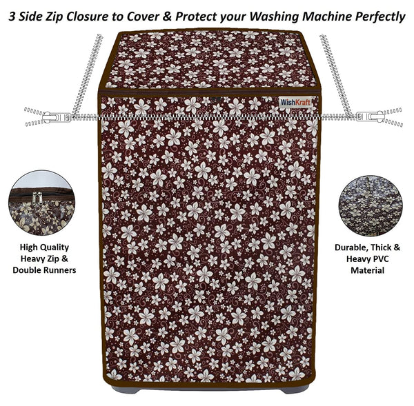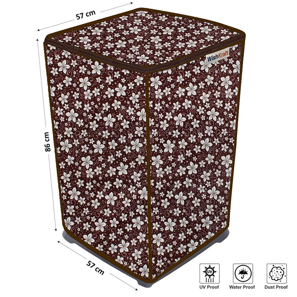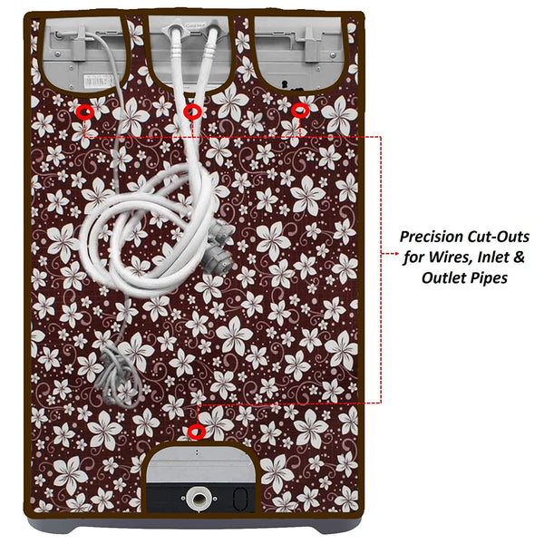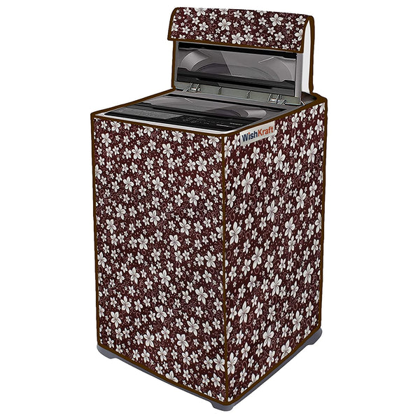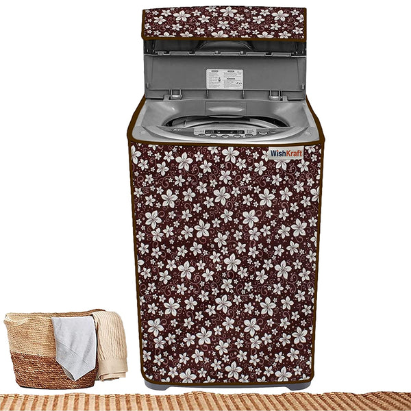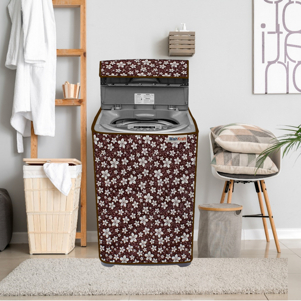 WishKraft Washing Machine Cover for Samsung / LG / Whirlpool / Godrej - Automatic Top Load Front Panel [Floral Gloss Brown]