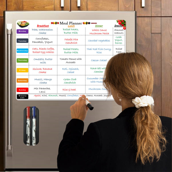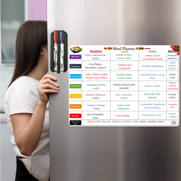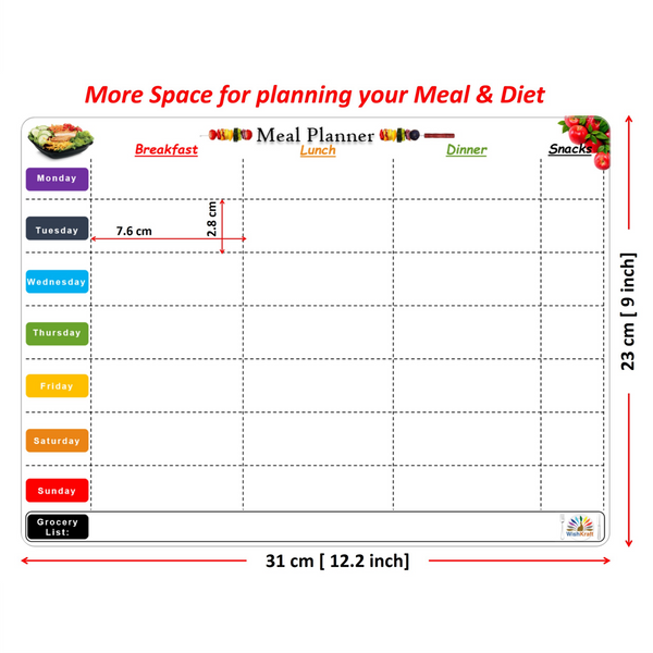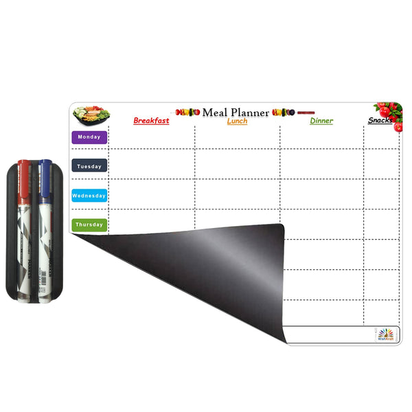 WishKraft Magnetic Meal Planner [12 x 9 inch] Dry Erase Whiteboard Sheet with Markers & Duster