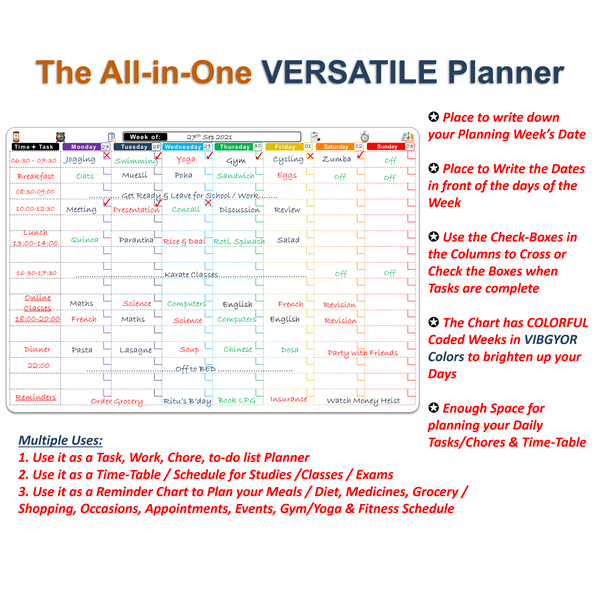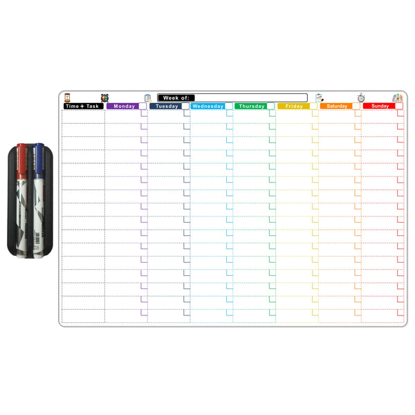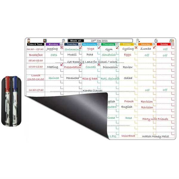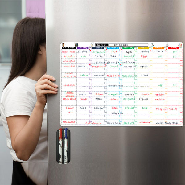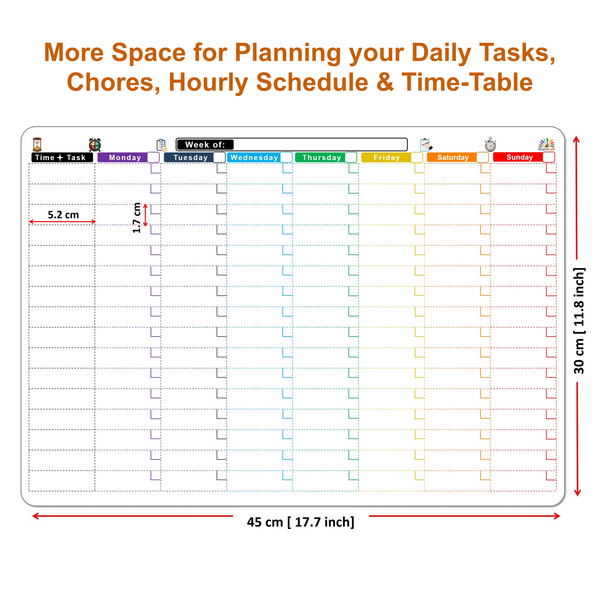 WishKraft Magnetic Daily Time-Task Routine Planner [18 x 12 inch] Dry Erase Whiteboard Sheet with Markers & Duster