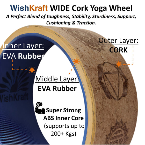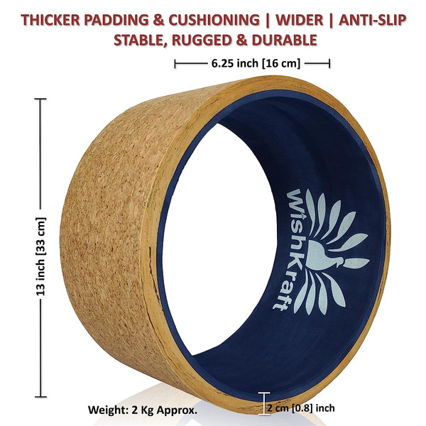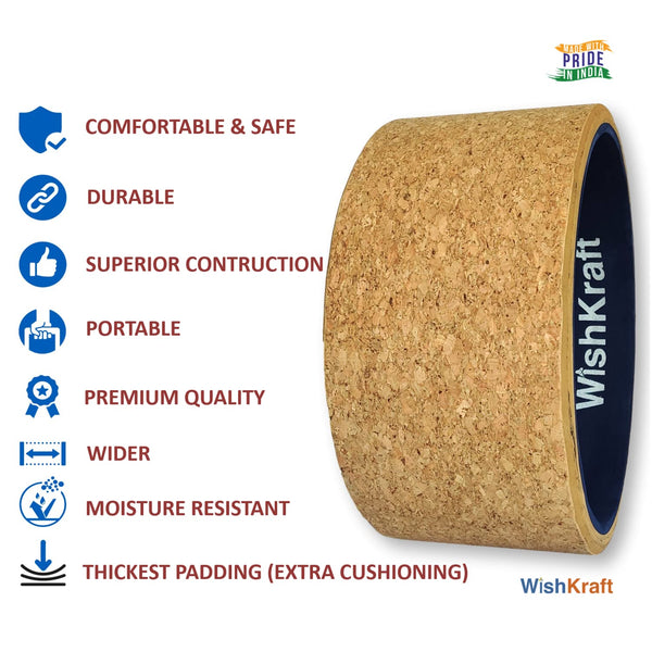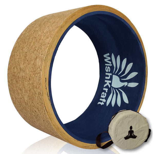 WishKraft Wide Yoga Wheel Roller 13 X 6.25 Inch [Cork Brown] with Canvas Bag