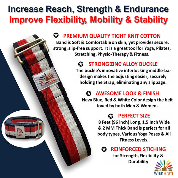 WishKraft Yoga Strap Belt [8 Feet] with Adjustable Zinc Buckle
