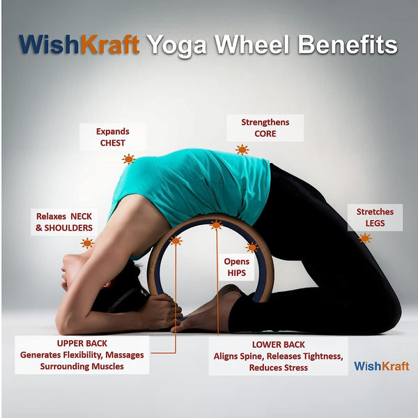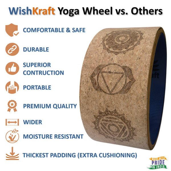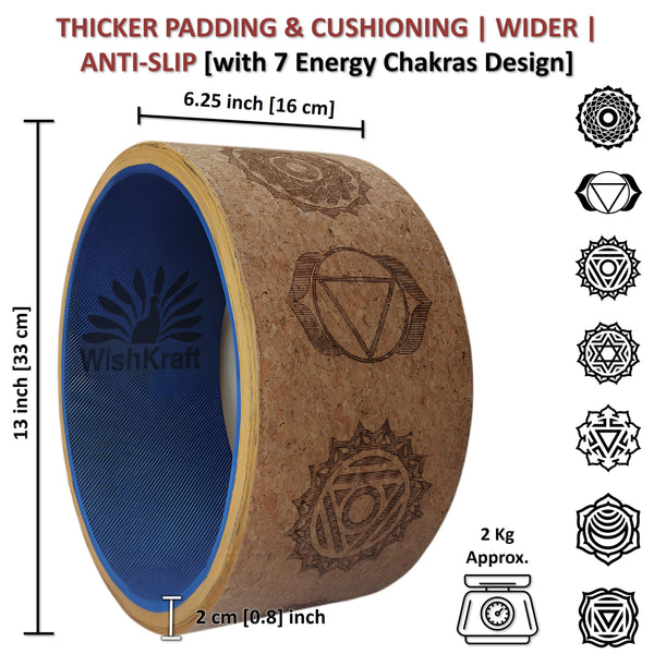 WishKraft WIDE Yoga Wheel Roller 13 x 6.25 inch [Cork Brown - 7 Chakras]