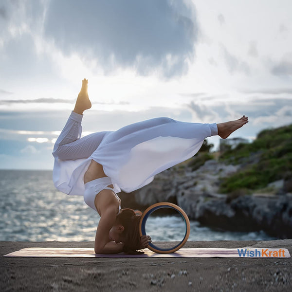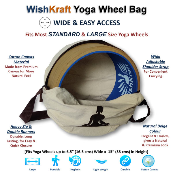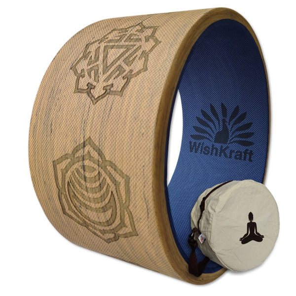 WishKraft WIDE Yoga Wheel Roller 13 x 6.25 inch [Teak Brown - 7 Chakras] with Canvas Bag