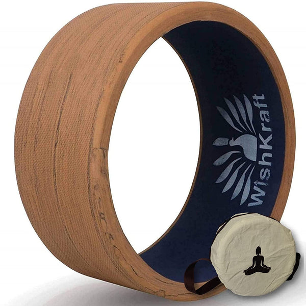 WishKraft Wide Yoga Wheel Roller 13 x 6.25 inch [Teak Brown] with Canvas Bag