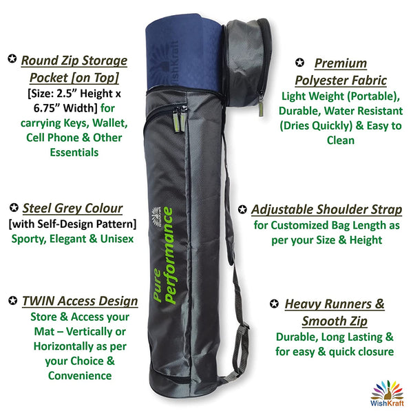 WishKraft Yoga Mat Carry Bag [Steel Grey]