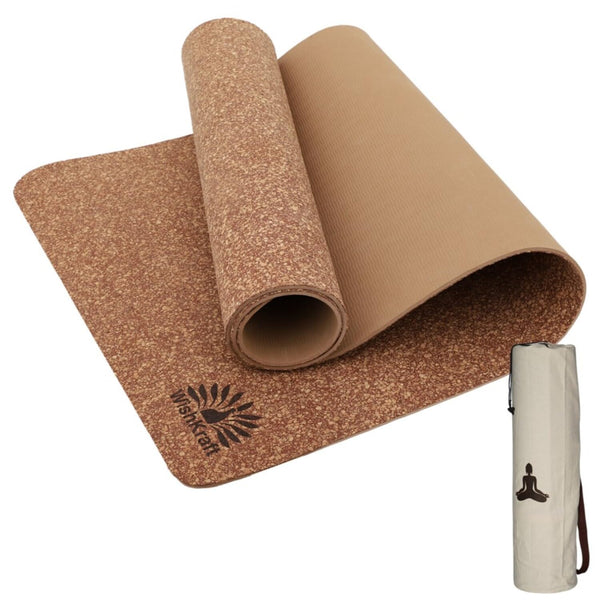WishKraft CORK Yoga Mat [72” Long x 24” Wide, 5 MM Thick] with Storage Bag & Strap