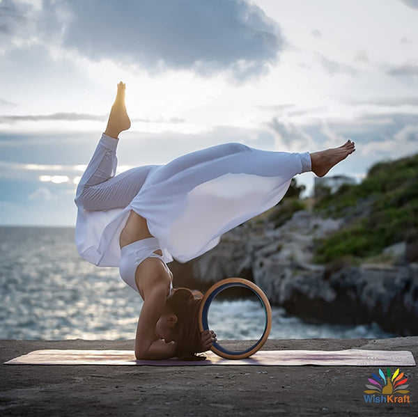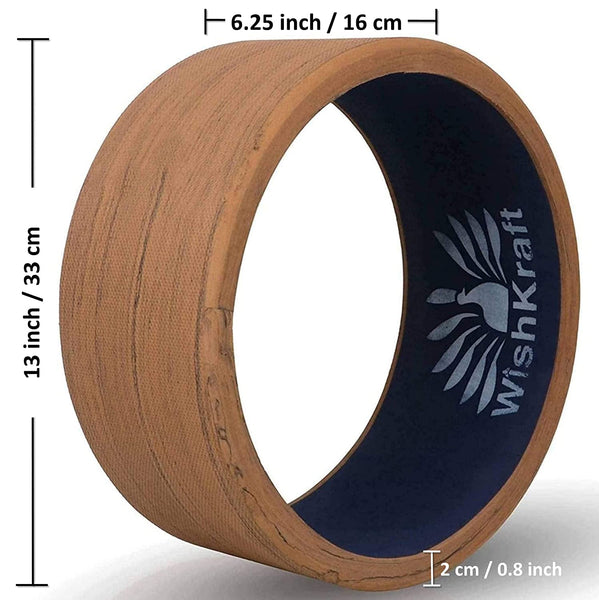 WishKraft Wide Yoga Wheel Roller 13 x 6.25 inch [Teak Brown] with Canvas Bag & Yoga Belt